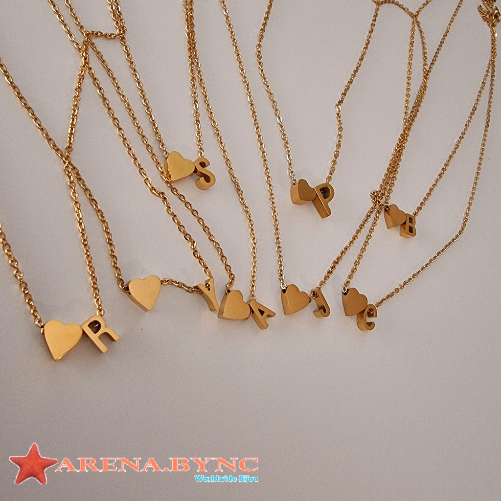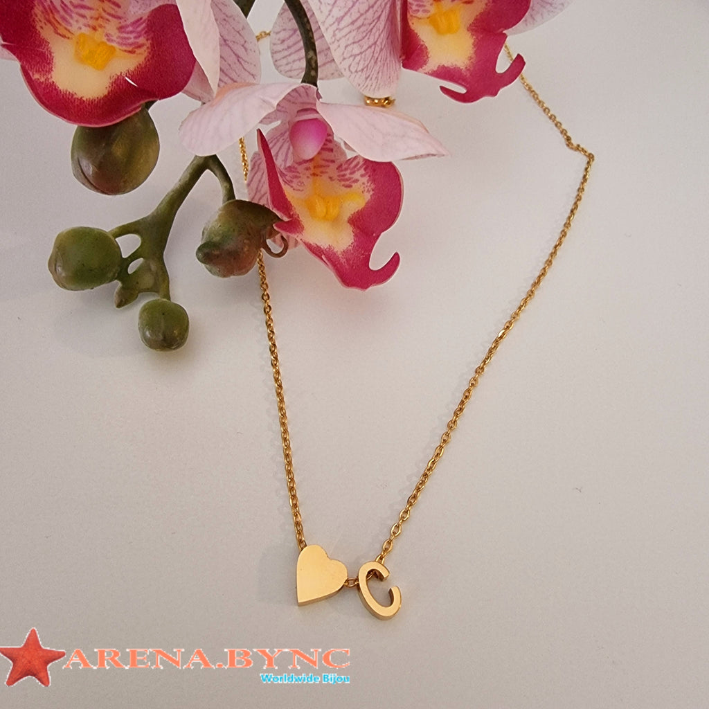 Delicado collar en acero inoxidable corto, con corazón y letra C