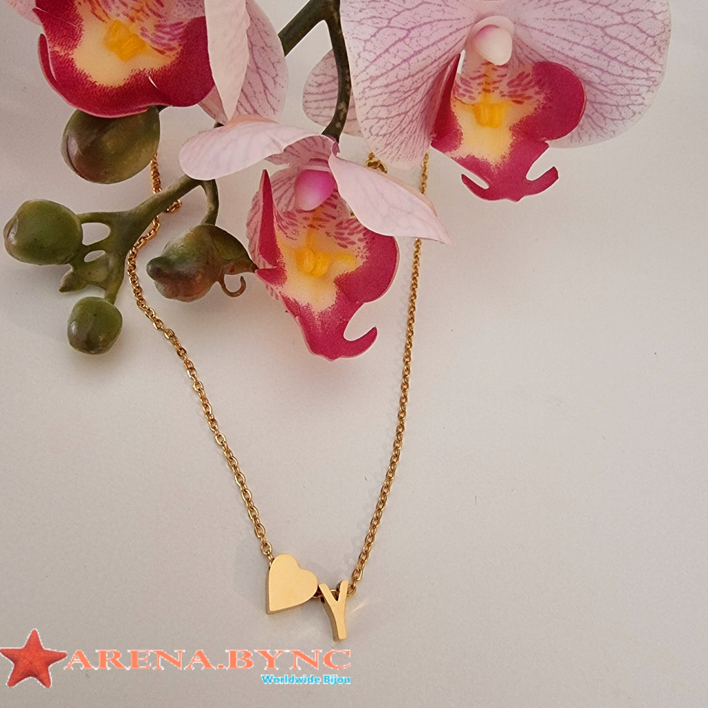 Delicado collar en acero inoxidable corto, con corazón y letra Y